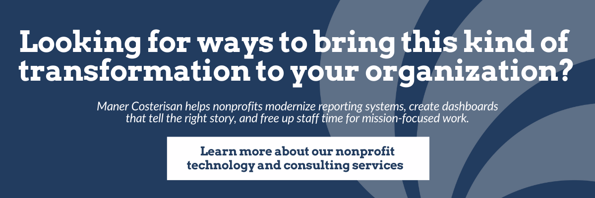 Our nonprofit consulting and technology team partners with organizations to modernize reporting, strengthen financial operations, and free up staff capacity for mission-driven work. Contact us to learn how we can support your organization or follow me on LinkedIn for ongoing insights on nonprofit reporting.