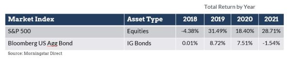 The pandemic and resulting economic policy shaped the investing environment that we are now experiencing, which compounded equity returns by the end of 2020 and throughout 2021. Of course, some type of monetary and fiscal response to the pandemic was essential for the economy and financial markets. Otherwise, the economic damage may have been catastrophic. We could have experienced far more business failures and depression-like unemployment without any stimulus hitting the banking system. Additionally, government transfer payments gave new hope to many in need. With that said, it isn’t entirely clear how equity returns would have fared in 2020 and 2021 without the pandemic and associated Fed response. Regardless, 2019 proved to generate sizeable returns to equity investors after the volatility experienced in 2018.